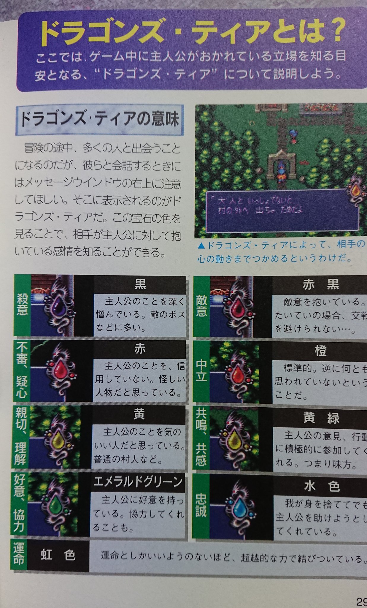11 ドラゴンズ・ティア ドラゴンズ・ティアとは、主人公がいつも 肌身離さず持っている、母親の形見です。 この宝石は、話しかけた相手の感情に応じ て、千変万化に色が変化します。人と話す ときに会話ウィンドウのドラゴンズ・ティブレス オブ ファイア V ドラゴンクォーター ブランド カプコン プラットフォーム PlayStation2 5つ星のうち41 134個の評価 Amazon's Choiceは、すぐに発送ができて、評価が高く、お求めやすい価格の商品をおすすめします。 Amazon's Choice ブレスオブファイアブレスオブファイア2 ~トラウマの町~ ゲーム BoF2のエブライの町です。町出ようとするときの音楽がいまだにトラウマ。ドラゴンズティア(会話噴